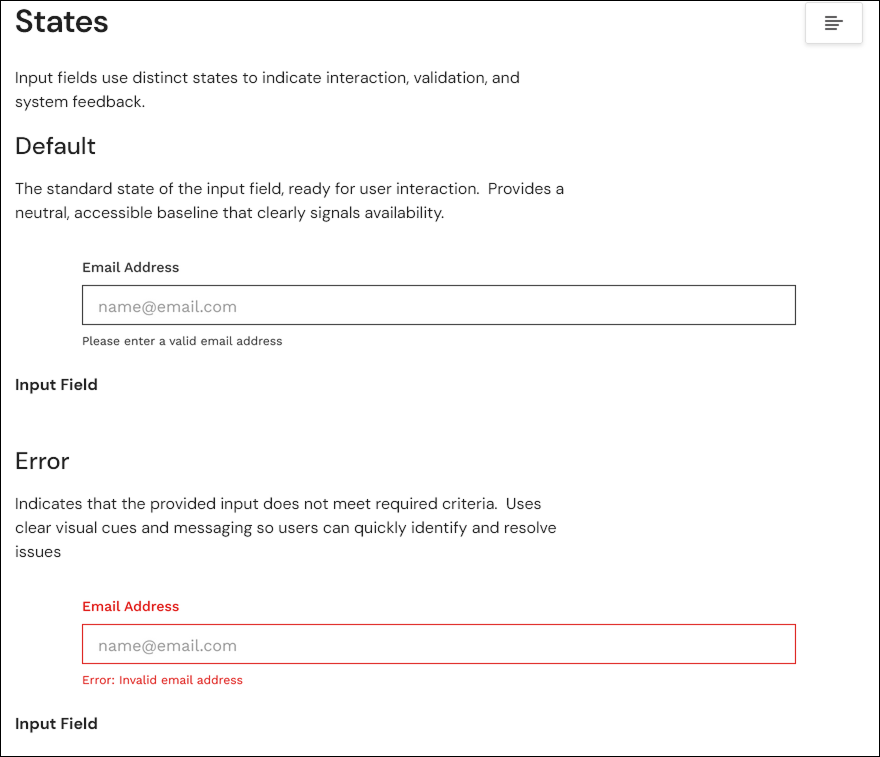 My foundational work on color, icons, and variables directly informed component behavior, ensuring accessibility considerations like contrast, focus states, and error handling were embedded by default rather than applied retroactively.